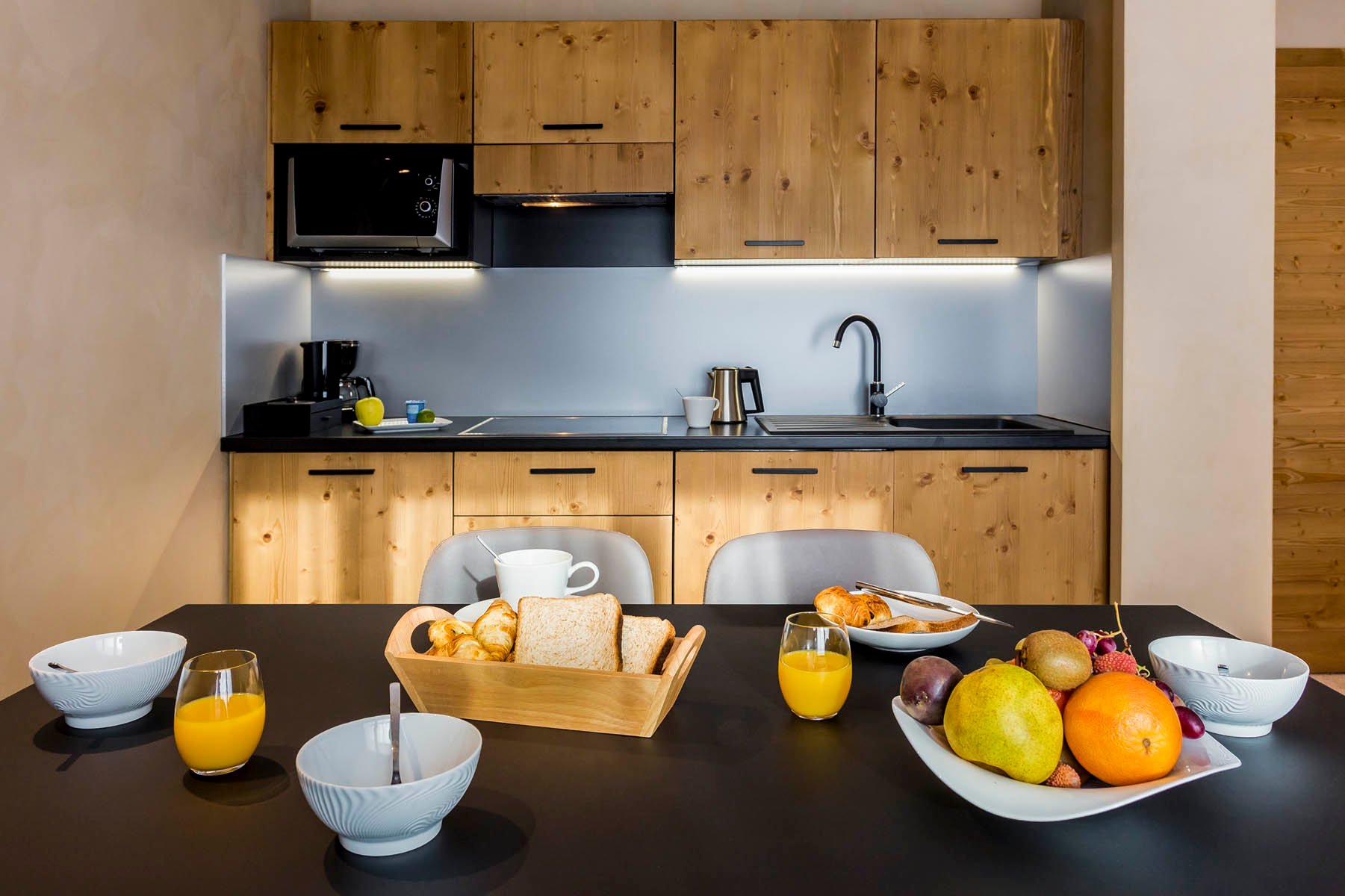 35 m² . vue sur les pistes . kitchenette . jusqu'à 6 personnes . (4 adultes et 2 enfants, lit bébé possible) · Service hôtel : petit-déjeuner et ménage quotidien inclus
